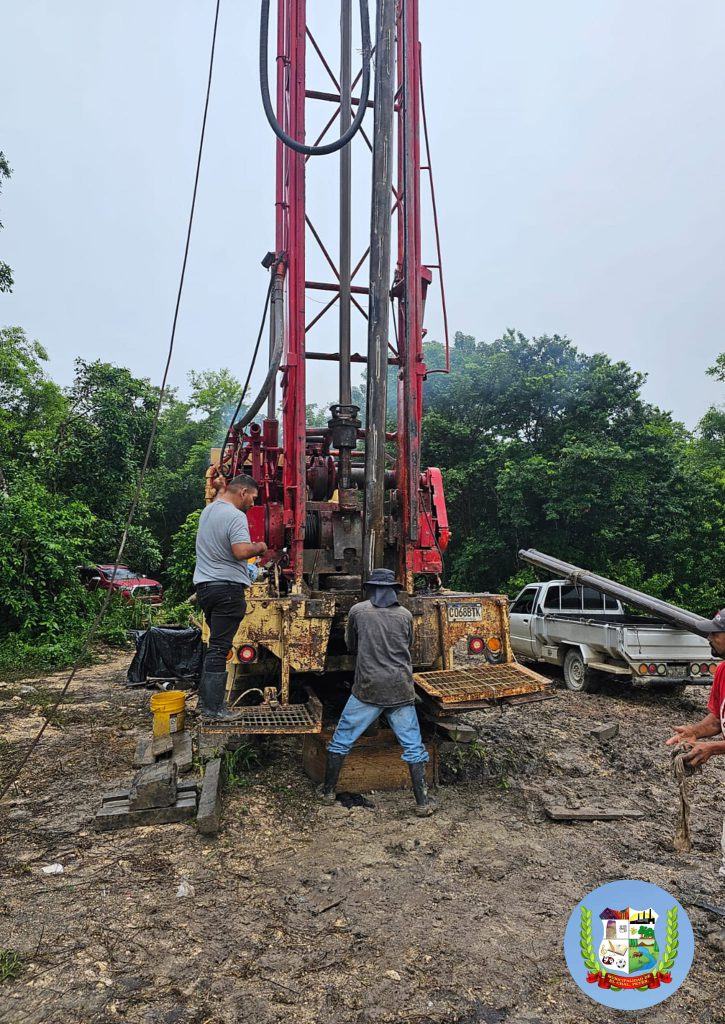El señor Alcalde Municipal, Elias Calderón Alvarez acompañado por integrantes del Concejo Municipal y representantes del Concejo Comunitario de Desarrollo – COCODE – Realizaron la supervisión en los trabajos de construcción de la red de distribución de agua potable y perforación de pozo mecánico en Caserío La Oriental.