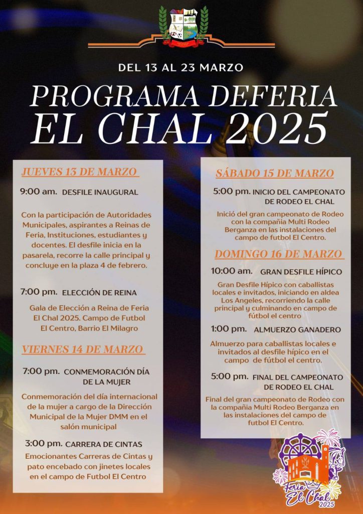 Noticias PROGRAMA DE FERIA EL CHAL 2025 25 marzo, 202525 marzo, 2025 Yuditza Gissel Peña Rodriguez 116 Views 0 comentarios Del 13 al 23 de Marzo