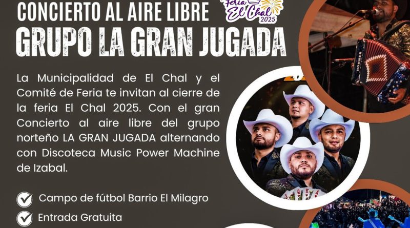 Prepárate para una noche inolvidable con un concierto al aire libre del Grupo LA GRAN JUGADA, alternando con Discoteca Music Power Machine de Izabal.