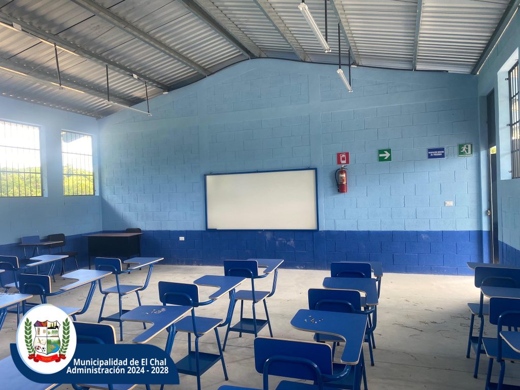 La obra fue ejecutada con fondos propios de la Municipalidad de El Chal, Petén, utilizando un sistema de mampostería con columnas y vigas de concreto armado y cubierta metálica, garantizando espacios seguros, duraderos y adecuados para el aprendizaje.