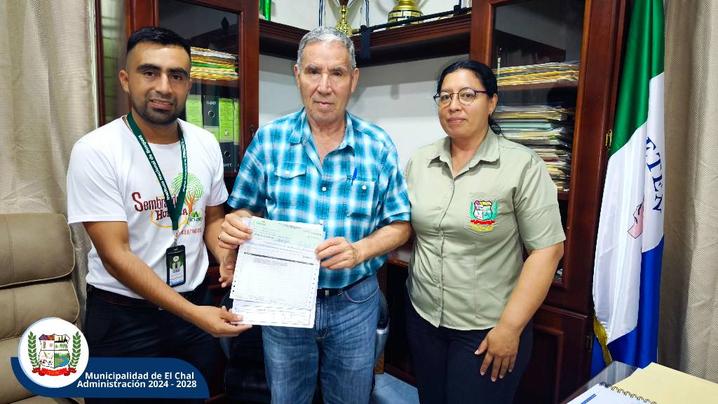 La Municipalidad de El Chal recibió el cheque correspondiente al 10% del valor de la madera en pie, como parte de los aprovechamientos forestales realizados en nuestro municipio.