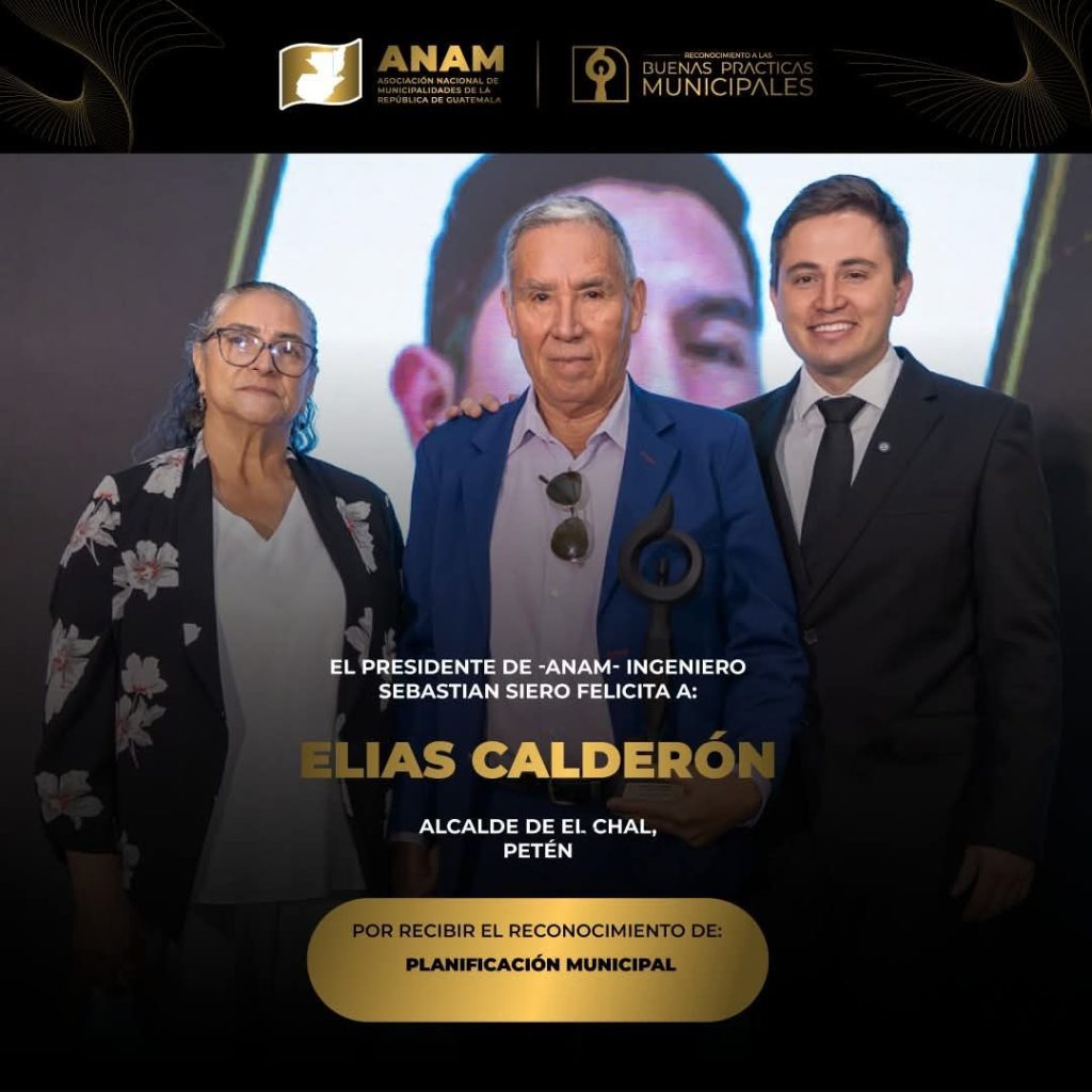 La Asociación Nacional de Municipalidades de la República de Guatemala (ANAM) otorgó al señor Elías Calderón Álvarez, Alcalde Municipal de El Chal, el Reconocimiento a las Buenas Prácticas Municipales en la categoría de Planificación Municipal, destacando los esfuerzos realizados para fortalecer la gestión pública y el desarrollo ordenado del territorio.