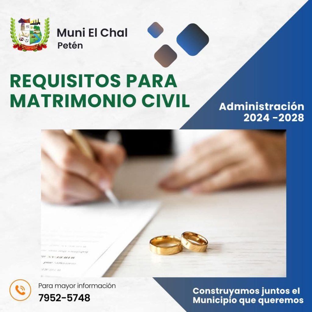 REQUISITOS PARA LA CELEBRACIÓN DE MATRIMONIO CIVIL EN LA MUNICIPALIDAD DE EL CHAL, PETÉN: