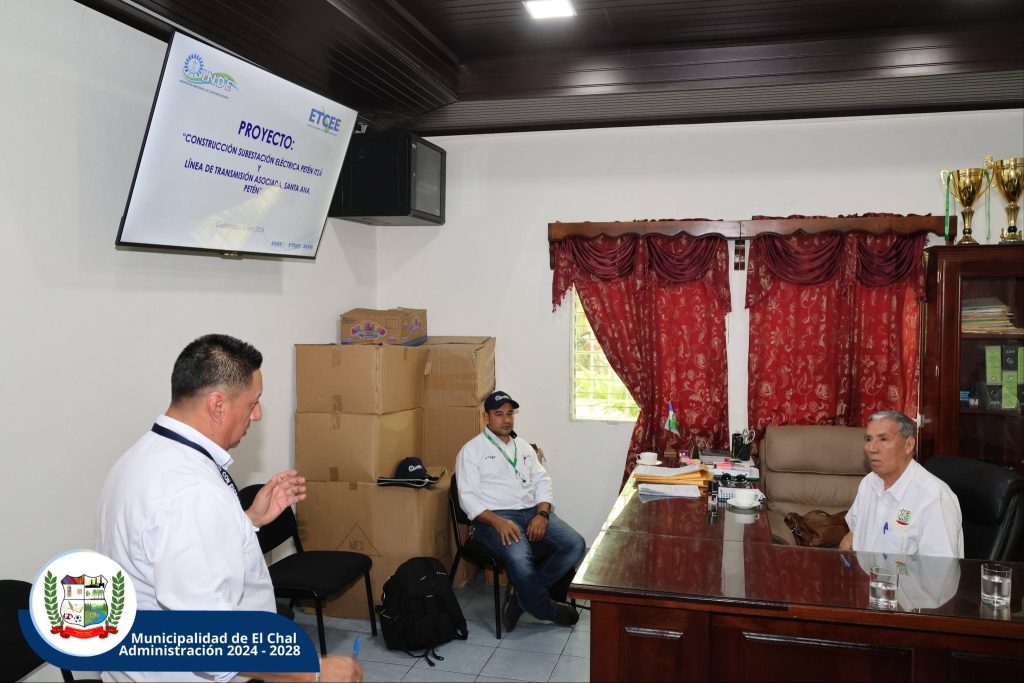 El señor Alcalde Municipal, Elías Calderón Álvarez, recibió en el Despacho Municipal a personal del Instituto Nacional de Electrificación (INDE), en el marco del proyecto “Construcción de la Subestación Eléctrica Petén Itzá y Línea de Transmisión Asociada, Petén”.