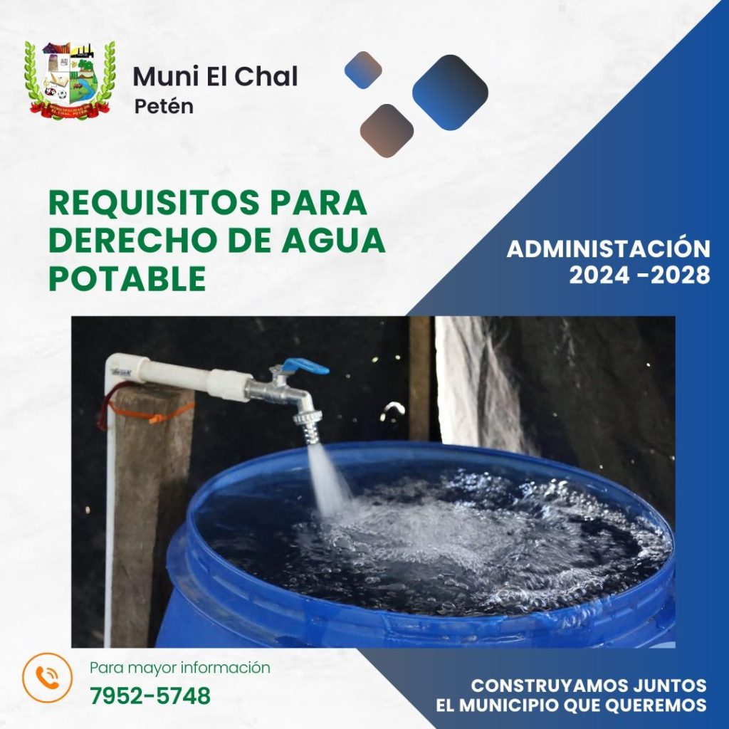 La Municipalidad de El Chal, informa a los vecinos de nuestro municipio, los requisitos para poder solicitar el derecho a servicio de agua potable.