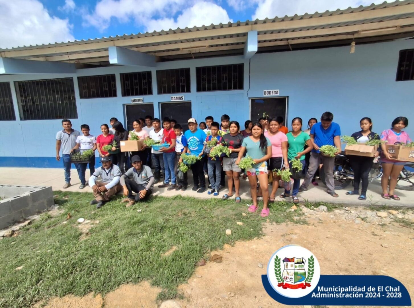 La Municipalidad de El Chal, por medio de la Sección de Agricultura y Medio Ambiente (SARNMA), entregó pilones y semillas a 54 estudiantes del NUFED en el caserío Santa Amelia, Microregión 5.