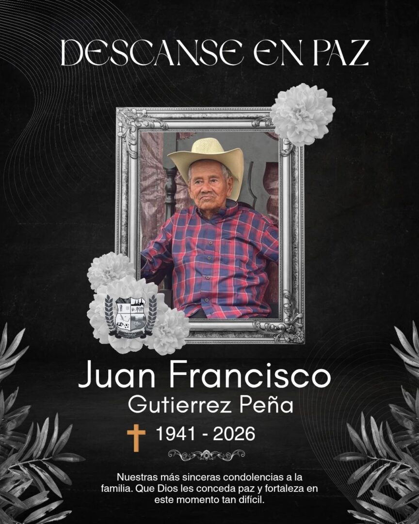 La Municipalidad de El Chal lamenta profundamente el sensible fallecimiento del señor Juan Francisco Gutiérrez Peña (Q.E.P.D.), quien en vida fue apreciado vecino y residente del Barrio San José, El Chal.