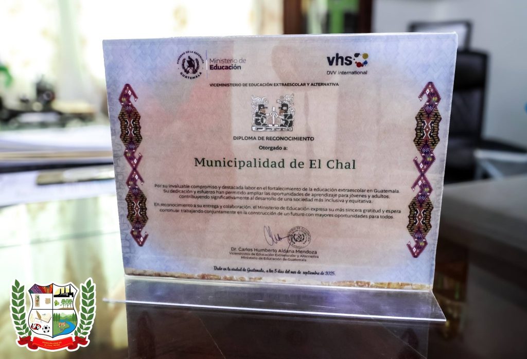 La Municipalidad de El Chal fue reconocida por el Ministerio de Educación de Guatemala, a través del Viceministerio de Educación Extraescolar y Alternativa, en mérito a su compromiso y destacada labor en el fortalecimiento de la educación extraescolar en el país.